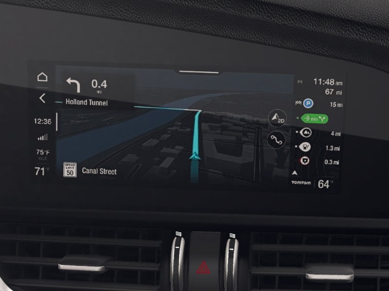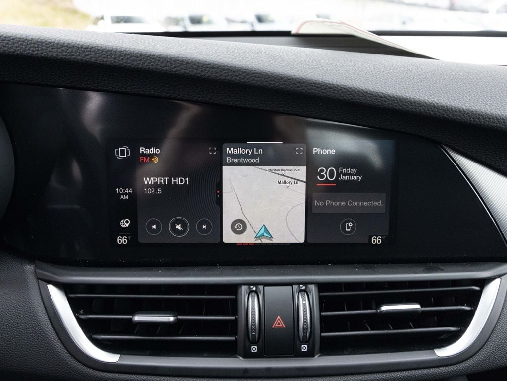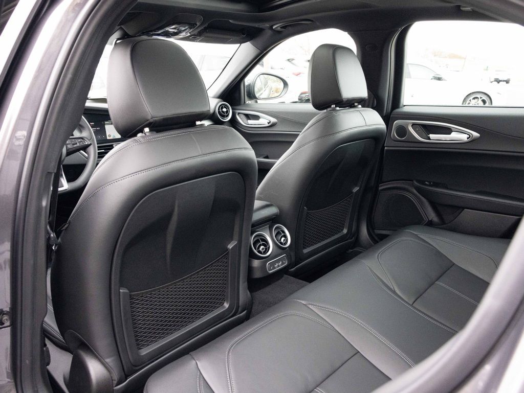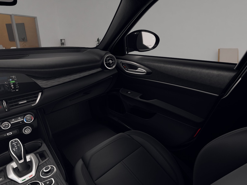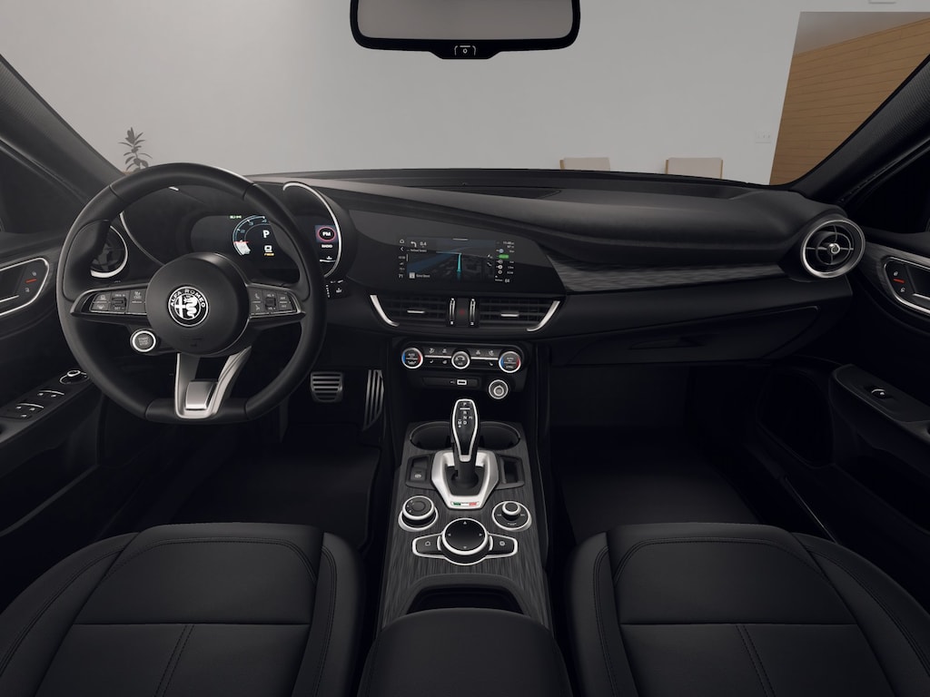 The driving experience is elevated by Alfa Romeo DNA drive modes, allowing the vehicles personality to shift from refined and efficient to dynamic and performance oriented at the touch of a button. A sport tuned suspension and carbon fiber driveshaft contribute to precise steering feel and excellent road feedback, making every drive feel connected and engaging.