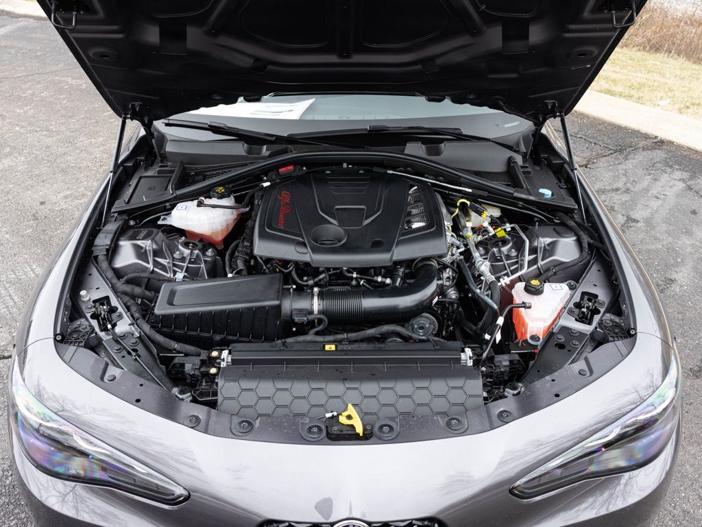 Power comes from a turbocharged 2.0 liter engine producing 280 horsepower, paired with a smooth and responsive 8 speed automatic transmission. Alfa Romeos advanced all wheel drive system enhances traction and confidence in varying road conditions, while the lightweight construction and near perfect weight distribution give the Giulia its signature sharp handling and composed ride.